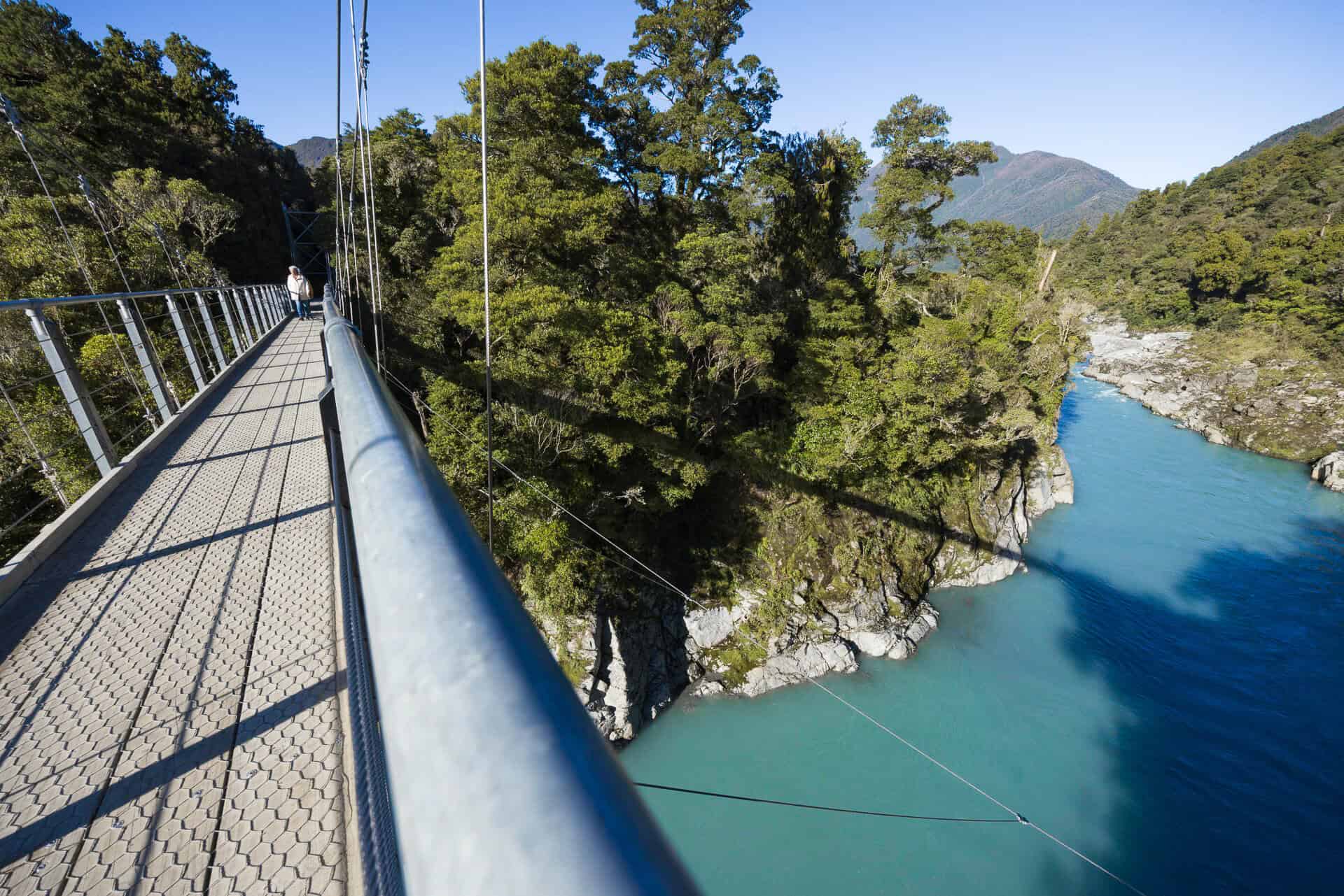 Just 30 minutes from town, the Hokitika Gorge is famous for its turquoise water, lush rainforest, and swing bridge views. The short loop track is well-formed and suitable for most fitness levels, making it one of the most popular things to do in Hokitika.